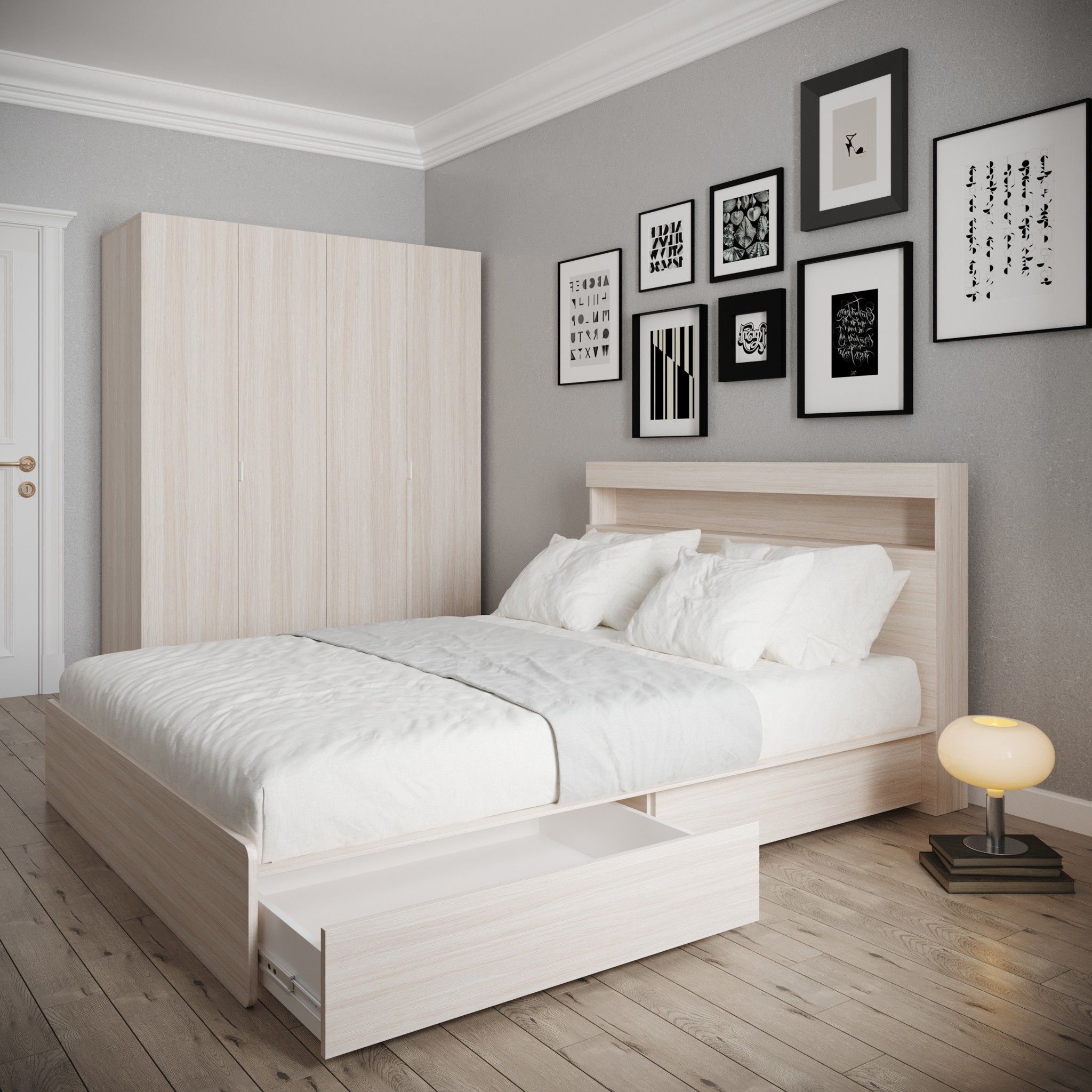 – Tích hợp 2 ngăn kéo lớn bên hông giường, cung cấp không gian lưu trữ rộng rãi cho quần áo, chăn màn và các vật dụng cá nhân, giúp phòng ngủ luôn gọn gàng và ngăn nắp.
