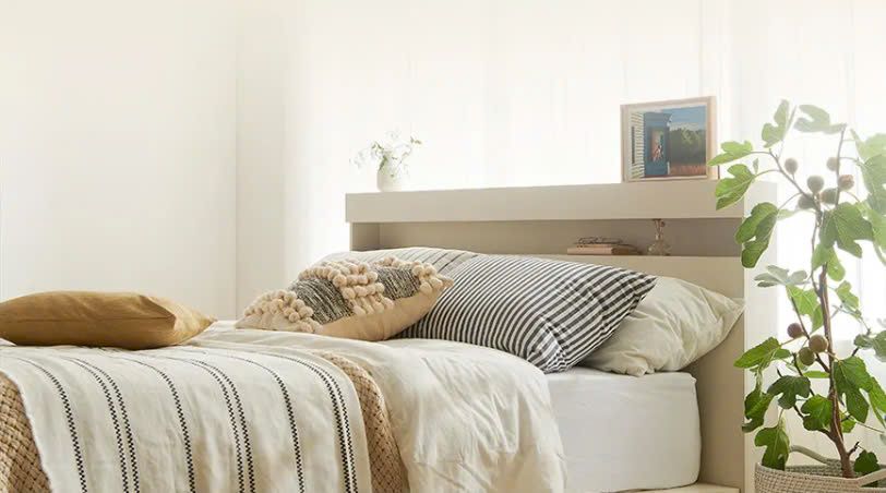 – Kệ đầu giường đa năng: Thiết kế kệ đầu giường tiện lợi để trang trí, đặt sách, điện thoại hoặc các vật dụng cá nhân, loại bỏ nhu cầu mua thêm tủ đầu giường.